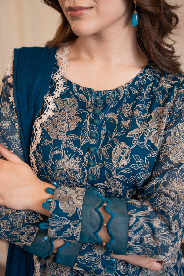 • Embroidered Chiffon Dupatta: 2.5 Meter